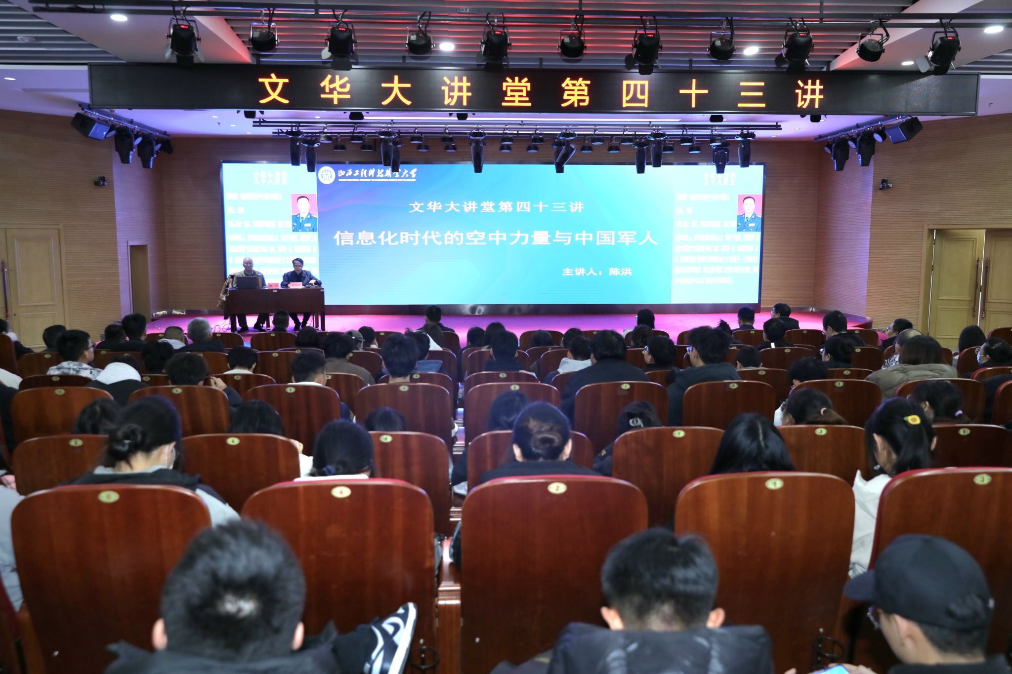 12月19日,我校举办“文华大讲堂”第四十三讲。学校邀请空军指挥学院教授、研究生导师、学科带头人陈洪为大家授课。校党委副书记赵随民主持讲座。